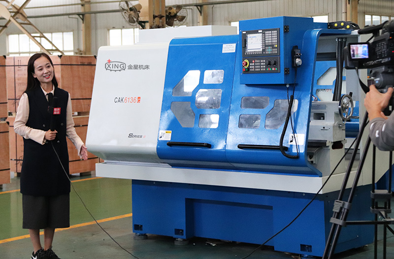 圖為主持人董迪對(duì)我廠研發(fā)的新產(chǎn)品車銑復(fù)合機(jī)床進(jìn)行介紹報(bào)道