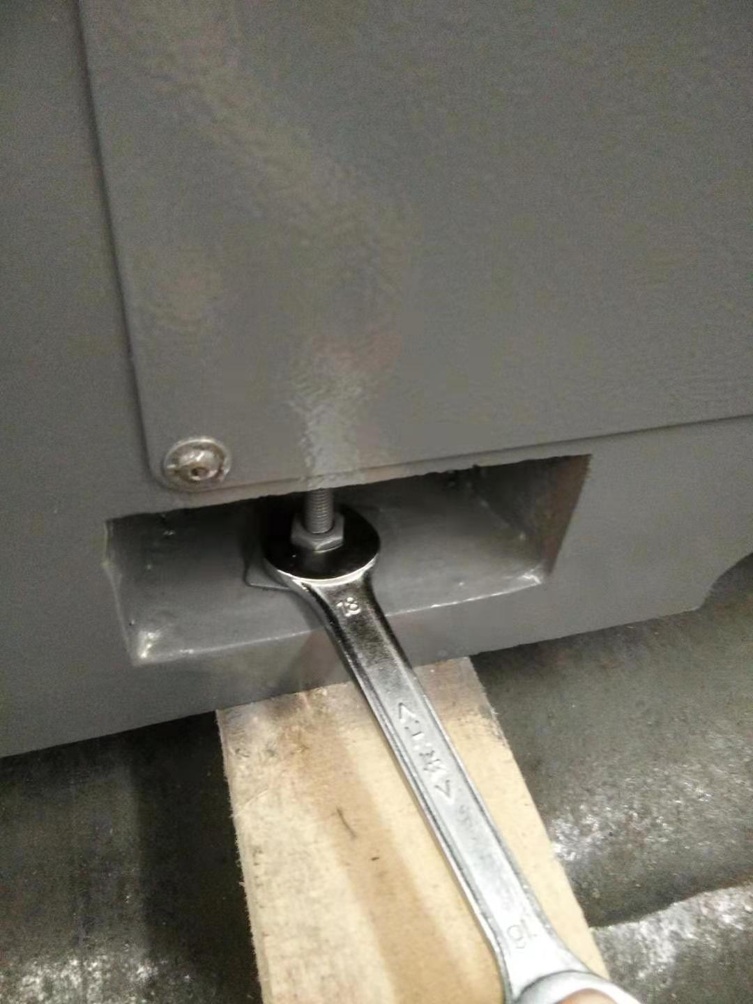 1、 數(shù)控機床的安裝:拆機床外包裝,拆掉固定機床的4個螺栓,使用3噸叉車鏟起機床,同時將調(diào)整墊鐵安裝到底座上。